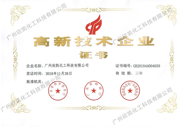 熱烈祝賀廣州欣凱化工科技有限公司榮獲“高新技術(shù)企業(yè)”認(rèn)證!
